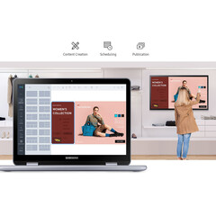 - Интегрирано решение за управление на съдържание и устройства. Решението MagicINFO на Samsung позволява лесно създаване на съдържание за сензорен дисплей Samsung QM55B-T и лесно планиране и управление от селекция от подбрани изображения и видеоклипове.