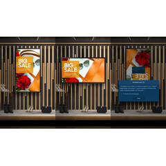 - По-добра видимост дори на слънчева светлина. Сензорен дисплей Samsung QM55B-T предлага подобрена видимост чрез стъкло без отблясъци, което премахва отраженията, които могат да попречат на ангажираността на клиента, докато матовото покритие създава по-гладко докосване.