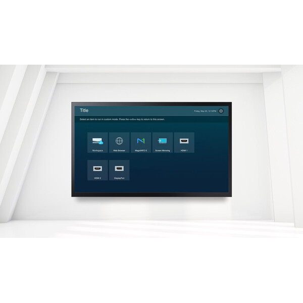 - Поддържайте настройките на стаята за срещи без нежелани промени. Сензорен дисплей 55" Samsung QM55BT е проектиран да опрости управлението на конферентната зала, Custom Home позволява на администраторите да заключват специфични настройки на залата за срещи, като не позволява на потребителите да променят настройките между срещите. Сега конферентните зали могат да работят през целия ден по предназначение, без грешки.