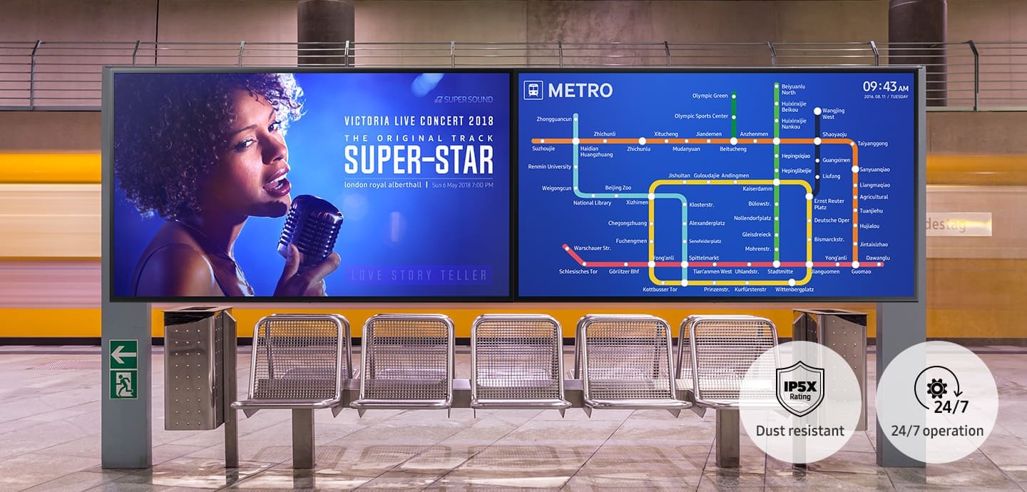Екран без отблясъци. Изключително важно е, когато рекламният дисплей Samsung QM65C е монтиран в търговска зона или на обществено място, качеството на картината да е безупречно и без отблясъци от дневна или силна изкуствена светлина. Всички дисплеи от серията на Samsung QMC разполагат с надеждни панели с покритие против отблясъци, които осигуряват по-добра видимост от всички ъгли, по всяко време на денонощието. Дисплеите с антирефлексно покритие позволяват на бизнеса да предоставя точна информация на критични места, като летища и гари.