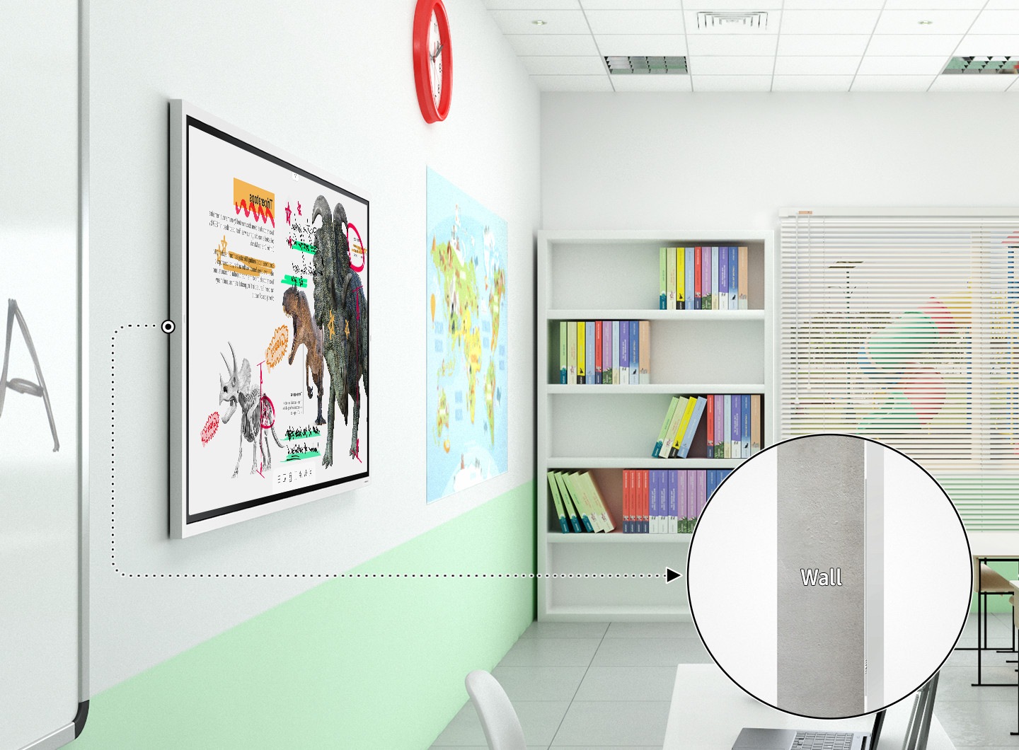 Samsung Wall Mount Flip Display 65" е проектирана за монтаж на интерактивен дисплей Samsung Flip 65" на стена. Стойката гарантира позиционирането на дисплея плътно до стената.