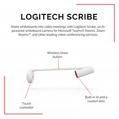 Share button for Logitech scribe white е елегантрен и удобен безжичен бутон за управление на камера за бели дъски Logitech scribe. На практика, чрез Share button for Logitech scribe можете да управлявате цялата презентация на бяла дъска само с едно натискане на бутона.