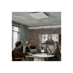 - За разлика отконферентните барове, монтирани на стената или под конферентния дисплей, монтирания на тавана решетъчен микрофон и високоговорител осигуряват по-постоянно качество на звука за всеки участник.