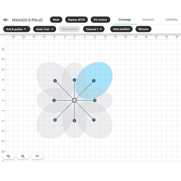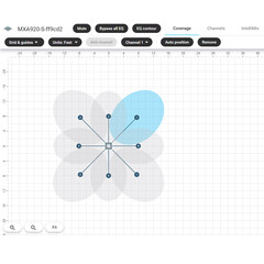 Конферентен микрофон Shure MXA920 покрива площ от 9х9м. в залата без никаква настройка. С помощта на вградения уеб интерфейс имате възможност да насочите аудио обхват само в зоната за дефиниране или само върху дефиницията на говорещи. С функцията Steerable Coverage можете да насочите до осем захващащи лъчи към дефиниционните части на стаята, когато микрофонът Shure MXA920 е инсталиран. Широкината на всеки захващащ лоб може да се регулира, за да бъде тясна (35 градуса), средна (45 градуса) или широка (55 градуса). Освен това имате аудио изходен канал за всеки отделен лоб, в допълнение към изхода за автоматично смесване.