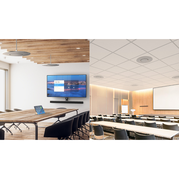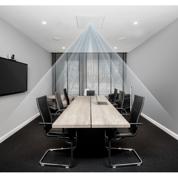 Shure MXA920 Ceiling Array Microphone е иновативен, елегантен и впечатляващо ефективен конферентен микрофон за таван с алуминиев цвят и кръгла форма. Технологията за автоматично покритие на Shure MXA920 Ceiling Array Microphone, улавя говорещите, които искате да чуете, като същевременно заглушава звуци в други зони. Конферентен микрофон Shure MXA920 обвхаща едновременно говорещите в различни зони на залата.