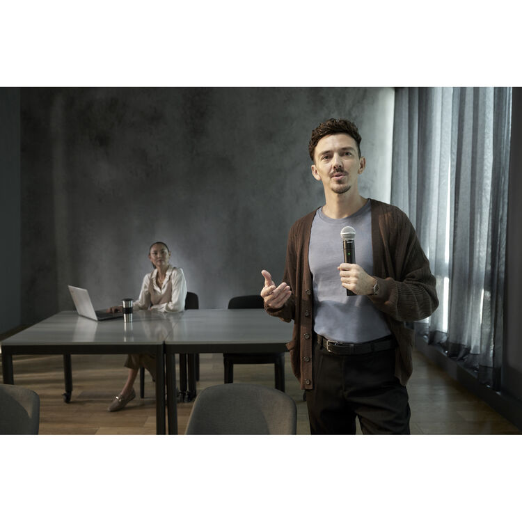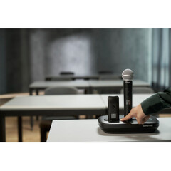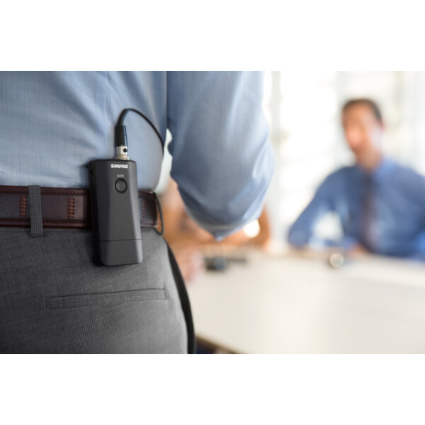 Безжиен предавател Shure MXW11 разполага с вграден микрофон, идеален за улавяне на реч, докато зарядното устройство е на ремък или пъхнато в джоба на ризата. Включена е щипка за колан за закрепване към дрехи. Всички безжични предаватели Shure Microflex Wireless осигуряват ярък, реалистичен звук, интелигентна безжична производителност, криптирано предаване и усъвършенствана презареждаемост за конферентни разговори и презентации.