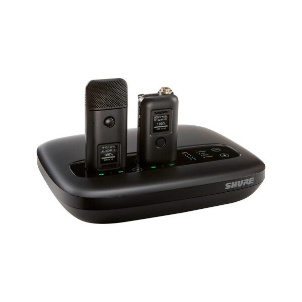 - Вградени слотове за зареждане за два Shure MXW1X bodypack, Shure MXW2X ръчни или Shure MXW6X гранични предаватели;