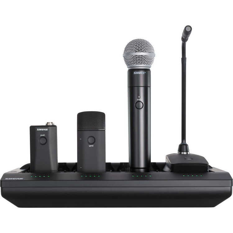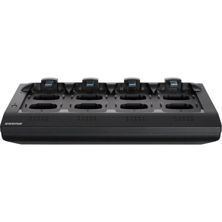 8 портовата мрежова зарядна станция Shure MXWNCS8 Networked Charging Station позволява зареждане на ръчни, преносими и гранични предаватели, както и бази тип „гъша шия“. Характеристиките включват индикатори за състоянието на зареждане, наблюдение на състоянието на зареждане, лесно свързване на предавателя и защита от презареждане при повреда на батерията.