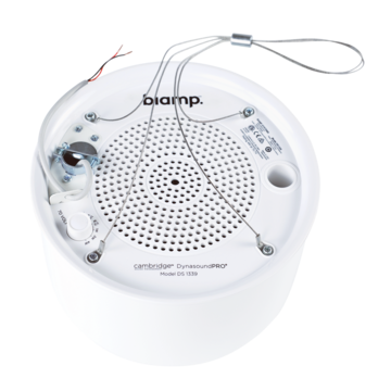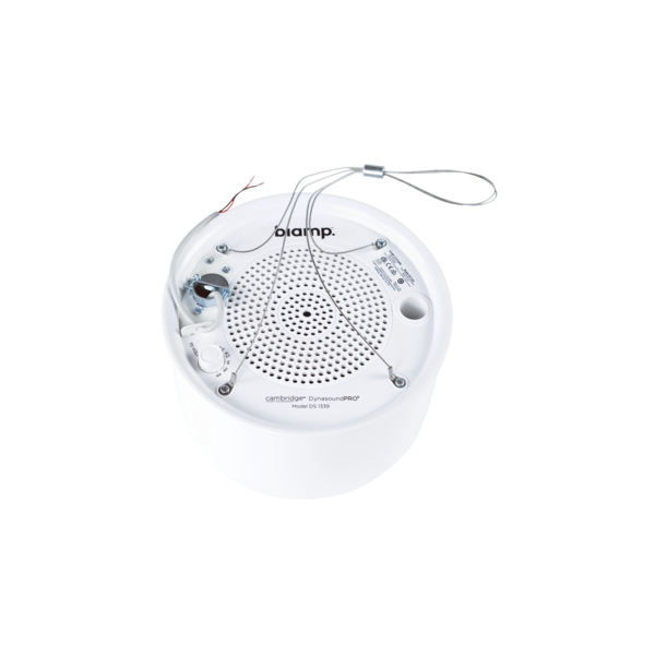 Sound Masking Biamp Cambridge DS1339W Plenum Loudspeaker е 70-волтов високоговорител, проектиран за употреба в помещения с отворена конструкция на тавана, където естетиката и акустичните характеристики са от значение. Неговият изчистен, минималистичен дизайн позволява дискретно да се интегрира в различни архитектурни среди, като същевременно осигурява надеждно и висококачествено маскиране и пейджинг на звука. Sound Masking Biamp Cambridge DS1339W Plenum Loudspeaker съдържа високоговорител с диаметър 5,25 инча, монтиран на ос. Компактният корпус включва извита, огнеупорна, акустична вложка за елиминиране на стоящи вълни и метален резонанс.