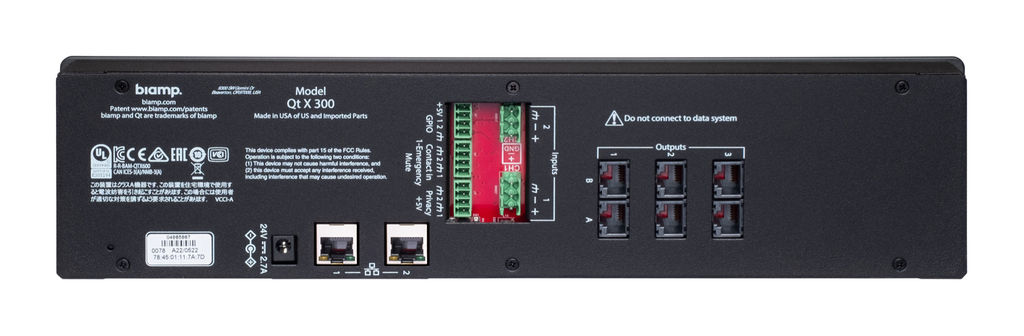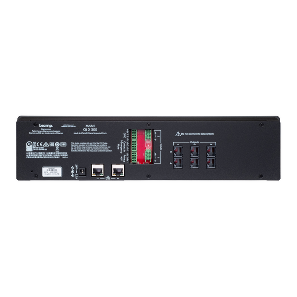 Sound Masking Biamp Cambridge Qt X 300D тризонов генератор за маскиране на звук, контролер, лентов еквалайзер и усилвател, поддържащ AVB или Dante медийни мрежи, с два спомагателни аудио входа, които позволяват разпространение на аудио от контролери за пейджинг и/или (фонови) музикални плейъри. Sound Masking Biamp Cambridge Qt X 300D контролира до три зони от стандартни или активни излъчватели Biamp Cambridge Qt. Контролният модул Sound Masking Biamp Cambridge Qt X 300D е компактен тризонов мрежов контролер, подходящ за инсталации до 3345 м². Всяка зона може да се регулира независимо за Sound Masking и спомагателни аудио нива и спектри. Когато в една система са включени множество контролери, аудио входовете могат да се споделят между всички контролери чрез AVB или Dante.