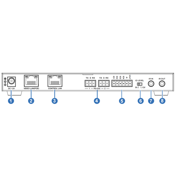 - 2x 1G LAN [RJ45 конектор] [VIDEO LAN поддръжка POE] 1x IR IN [3,5 mm аудио жак, 12 V ниво]