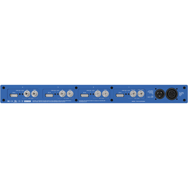 Въпреки че 4K видео източниците са на път да станат нещо обичайно в професионалната и потребителска електроника, а 8K точно е зад ъгъла, все още има доста решения за пренос на сигнал, използващи Full-HD инфраструктура. 3G-SDI е доказана, надеждна транспортна среда и се ползва с доверието на милиони потребители по целия свят, а голямо количество дисплеи и проектори все още се доставят с вградена Full-HD поддръжка. Междувременно 4K източници като компютри и медийни сървъри са лесно достъпни и това често създава случай на загуба, когато дисплеите не могат да използват пълния пикселен изход на източника. Theatrixx DisplayPort към Quad-SDI преобразувател е идеалният мост между 4K източници и Full-HD дисплеи. Той е проектиран с една единствена функция: използвайте 4K50/60, DisplayPort 1.2 входен сигнал и го разделете на четири 1080p60 квадранта на 3G-SDI конектори. С 4 канала за обработка в компактен 1U корпус, устройството е в състояние да приема 4x 4K60 DisplayPort входа и да доставя 16 Full-HD, 1080p60 изхода едновременно с нулева конфигурация. Латентността е сведена до минимум благодарение на опростена, но стабилна архитектура за обработка. Всеки канал за обработка разполага с вход Gen-Lock и loop thru за външна синхронизация и устройството е в състояние да генерира тестов модел, когато към неговия вход не е приложен сигнал. Преобразувателят DisplayPort към Quad-SDI е доказателство за бъдещето, позволявайки синхронизиране на множество канали заедно, за да се справят с комбинирани резолюции от 8K, 16K и повече.