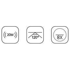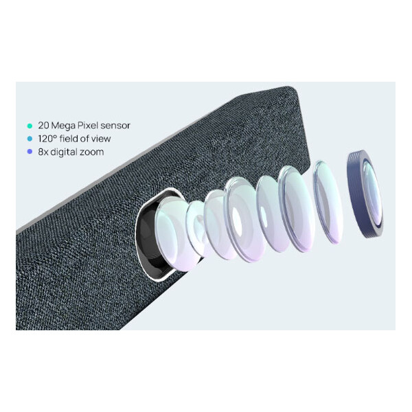 - Камера с 20-мегапикселов сензор и 120° зрително поле, осигуряващи ултра-ясен и ултра-широк изглед дори в малки пространства;