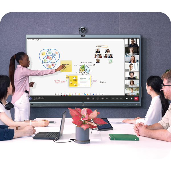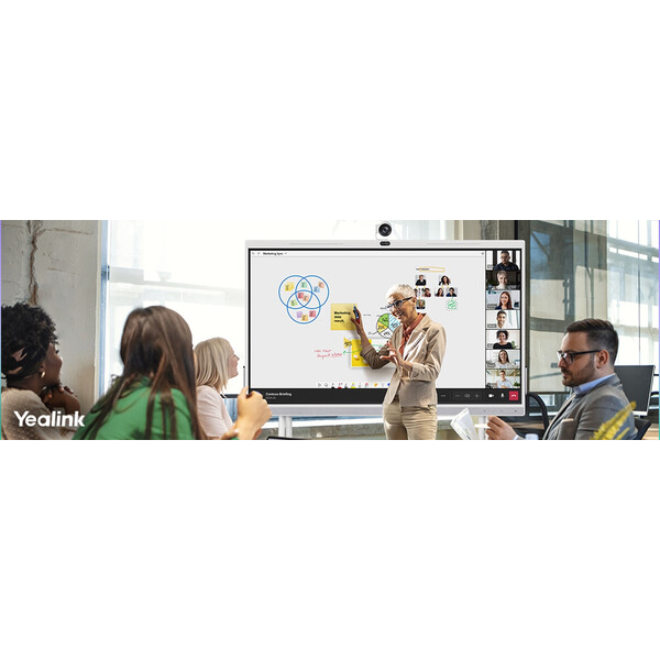 Yealink MeetingBoard Pro 65'' е нов продукт комбиниращ 65" интерактивен дисплей с широкоъгълна конферентна камера. All in one решението е всичко, което е необходимо, за да проведете конферентна или хибридна среща в залата за срещи в офиса или в зона от него. На разположение имате интелигентна дигитална бяла дъска и видеоконферентен дисплей за отдалечена среща. MeetingBoard Pro поддържа Microsoft Teams, Zoom и BYOD (Bring Your Own Device), превръщайки се в гъвкаво и лесно за използване устройство тип „включи и работи“ (plug-and-play).