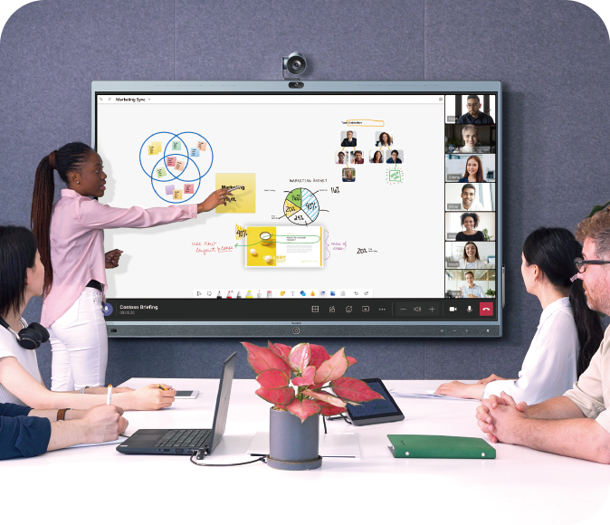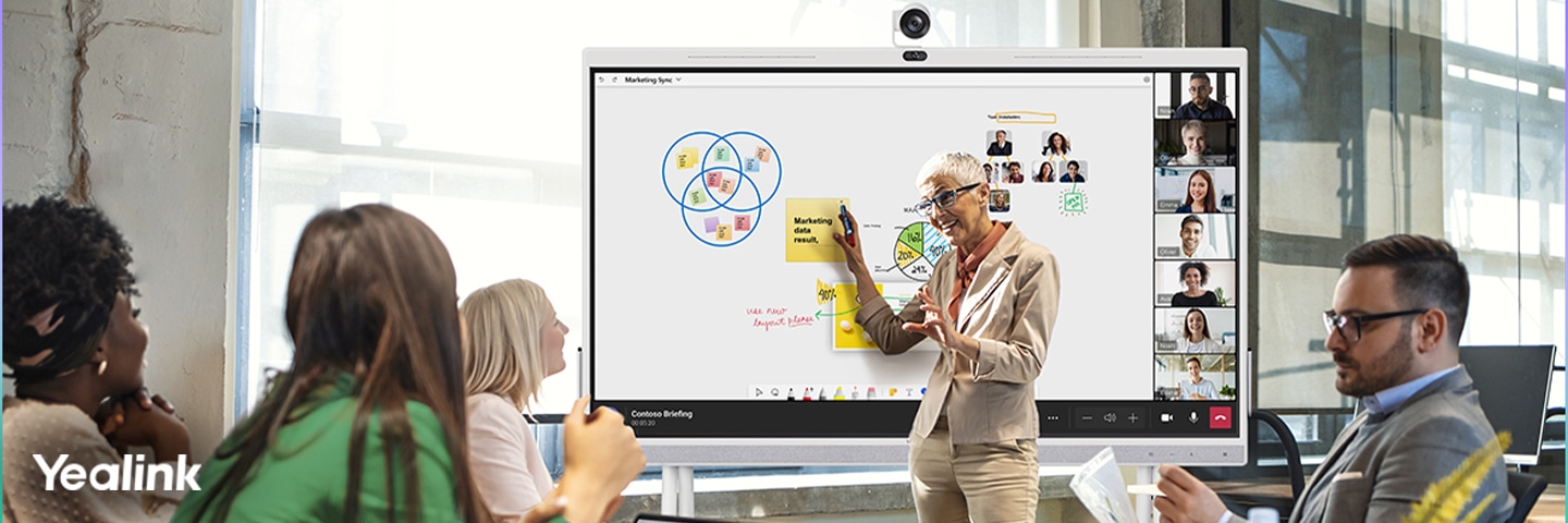 Yealink MeetingBoard Pro 86'' е нов продукт комбиниращ 86" интерактивен дисплей с широкоъгълна конферентна камера. All in one решението е всичко, което е необходимо, за да проведете конферентна или хибридна среща в залата за срещи в офиса или в зона от него. На разположение имате интелигентна дигитална бяла дъска и видеоконферентен дисплей за отдалечена среща. MeetingBoard Pro поддържа Microsoft Teams, Zoom и BYOD (Bring Your Own Device), превръщайки се в гъвкаво и лесно за използване устройство тип „включи и работи“ (plug-and-play).